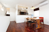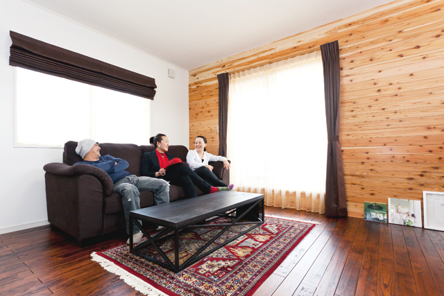 建物のファサードには広いデッキ。そして、デッキから出入りするエントランスや木のフローリング。西部劇に出てくるようなアメリカンスタイルの住まい。ファサードには木目を現し、玄関ポーチにデッキを配したプランは、当初からのイメージを最大限取り入れたもの。室内空間ではスキップフロアが採用され、暮らしの中心となるLDKは2階に配置。スキップフロアとしたことで生まれた空間は主に収納スペースに。具体的な家づくりに取り組み始めたのはおよそ2年前。とある設計士にプランを依頼されたそうだが、結局1年を費やしたプランは、内容的にもコスト的にも納得いくものではなく、業者選定からやり直すことになる。 家づくりを始めてからの経緯から「棟上げの時には、感動してこみあげてくるものがあった」というが、住まい手と建てる側の相性の大切さを改めて考えさせられる。