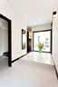 自然志向の素材をふんだんに採用しながら、理想だったシンプル&モダンの住まいを実現されたYさん邸。2色で貼り分けた総タイル張りの外観は、片流れの屋根や開口デザインをアクセントに、直線を組み合わせたシャープさと、サイディングなどとはまた違った重量感が共存する。玄関を入ると、ホール正面にはコート(中庭)。どの部屋からも見渡せるこのコートは、外の空間から完全に遮蔽され、家族の集いの場としてのプライベート空間であると同時に、採光や通風を確保する空間としても機能している。家族の健康を大切に、自然素材をふんだんに採用しながら、イメージ通りのシンプル&モダンの居住空間を実現されたYさん。開放的なリビングや中庭で家族団らんの時を過ごされる姿が目に浮かぶようだ。