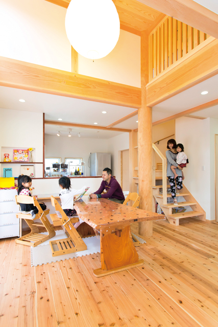寺社建築でも多くの実績を誇り、一般住宅においても熟練の大工たちの手刻みにこだわり続ける大松建設。「家は家族と共に年を重ねるもの」との思いから、使用する材はすべて無垢材。洋風、和風を問わず、味わい深い佇まいになっていく住まい造りが、同社のスタイルだ。豊かな知識や技術は、室内デザインにも活かされ、原木から削りだされる現しの梁をはじめ、空間設計も風情や経年美を大切にしたもの。独特の造形美が、一味違った住まいを生み出す。また、夏涼しく冬暖かい住環境を提供する『通気断熱WB工法』や、リサイクル紙を原料とした『セルローズファイバー断熱』にも取り組み、採光・通風にも工夫を凝らすなど、住まいの快適性の追及にも余念がない。