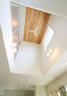 吹抜けを設けて明るい空間に。ペットと暮らす癒しのリビング