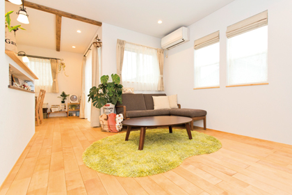 Fさん邸のリビングは、カバザクラの床が優しさを醸し出す、安らいだ雰囲気が印象的だった。カリモクのソファやダイニングテーブルなど家具も室内イメージに合わせてコーディネートされ、キッチンカウンターの壁に飾られたインテリアをはじめ、部屋の随所には可愛い雑貨や小物たち。柄やフォルムにもとことんこだわったというカーテンやアイアンのレール、空間を彩るアンティークな照明器具など、まさに「お気に入りに囲まれて暮らしたい」という思いを実現されていた。エルテオ・ホームのモデルハウスで表現されていた「大人かわいい家」に一目で魅かれて同社への依頼を決めたというFさん。そのコンセプトをベースに自らのこだわりでエッセンスを加えた住まいには、家族みんなが「居心地がいい」と思える、そんな空間が広がっていた。