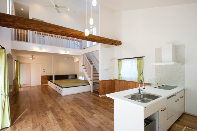 エコノミー&エコロジーをコンセプトに開発された、グリーンホーム・アドバンスの支払い『0住宅』。通常、オプションとして高額なオール電化・太陽光発電システムを標準工事としており、一般的な4LDKの住宅でも10kw以上のシステムが搭載でき、大きな売電収入を確保。光熱費負担を無くし、家計にとって大きなプラスが見込めるという。建築スタイルに制限はなく、今回取材させていただいたお宅では、理想とされた南欧調の住まいに10.5kwの大容量システムを搭載されていた。また、「住まいと家族の安全を守るため」に『ハウスガードシステム』を採用。住宅の柱や土台といった主要部分に加圧注入処理した国産無垢材『緑の柱』が、家と家族を守っている。