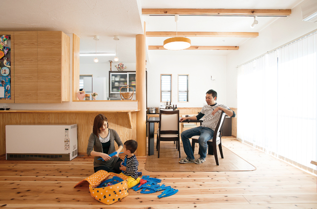 「住まい手が豊かさを感じる家」を目指し、〝地産地消の家〟に取り組むハヤシ工務店。県内各地から供給される木材を構造材だけでなく仕上げ材にもふんだんに採用し、樹齢50年を超える力強い大黒柱を現すなど、木材の温もりが伝わる豊かな空間造りが施主たちから共感を得ている。地域型住宅ブランド化事業『ちょうの家』に取り組むほか、家造り関連に地産の食や地元作家のクラフト作品も加えた『〝良(い)い・食・住〟暮らしづくり』も毎年開催。地産地消への思いは、暮らし全般に広がっている。また、吹付発泡断熱の『アイシネン』や『ジェイベック』を採用して〝高気密・高断熱+計画換気〟にも注力。快適な住環境造りにも余念がない。