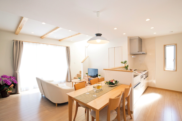 独自の耐震木造構法をベースに創エネ、省エネなどのエコ性能を付加した家づくりで全国にネットワークを築くロイヤルハウス。木の強さを活かしながら革新的テクノロジーを加えることで、地震に強い木造住宅を実現する『ロイヤルSSS(スリーエス)構法』は、耐震等級や耐風等級など住宅性能表示における7項目で最高等級を得ている。グッドデザイン賞を受賞したデザイン性や、スケールメリットを活かしたコストパフォーマンスの高さが魅力で、コンセプトプランも豊富。本社隣に完成したモデルハウスは「子育て夫婦が楽しく暮らす家」がコンセプトの『COMUNI(コムニ)』シリーズ。家族の絆やつながりを大切にしたプランが体感できる。
