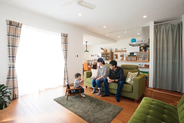 「地震も気になるし快適にも暮らしたい」と住宅性能に目を向けていたご主人。好きな雑貨が映えるデザインや間取りを重視されていた奥様。お二人の想いが両方叶うことを前提に工務店探しを進める中で出会ったのがコーラルハウジングだった。地域型住宅ブランド化事業『SUMIKA』で建てた住まいは、長期優良住宅であり耐震等級は最高ランクの3。断熱には現場吹付の『アイシネン気密・断熱システム』を採用して、省エネ等級も最高ランクの4を取得するなど、要望どおりの頑強さと快適性を提供している。また、塗料はすべてF☆☆☆☆(フォースター)を使用し、風や光もたっぷりと取入れる設計や太陽光発電の搭載により、家族の健康的な暮らしを守り、環境にも優しい住まいを実現している。住み始めて、ますます暮らしやすさを実感されているようだった。