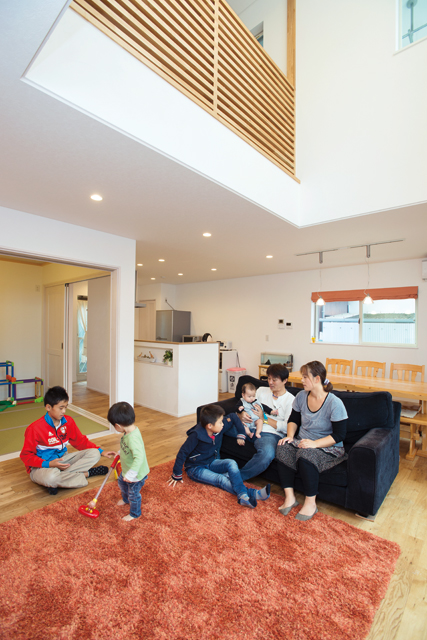 光と風を感じる空間設計が活きる 子供たちが走り回れる、団らんの家