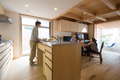 キッチンが我が家の中心。家事の間も、家族の笑顔がいつもそばに