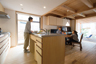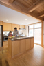 「新しい住まいは、キッチンを家の中心に置きたかった」。そう語るNさんが、家づくりのパートナーに選んだのは、宍粟市産のスギやヒノキを90%以上使った住まいを提案するヤマヒロだった。N邸のアイランドキッチンは、ヤマヒロのオリジナル。ヤマヒロでは、サイズ調整できる同型のキッチンを大量に作っているので、オリジナルでもコスト面も良心的だ。特筆すべきは、なんといってもキッチンからの景色。正面に広がるのは家族が集うリビング、そして爽やかな植栽に包まれたアウトリビング。毎日続く1日3度の台所仕事も、ふと手元から顔を上げるだけで、家族の笑顔や木や緑に癒される。外の景色へと導くようなスギの梁も印象的だ。奥様のお気に入りは、使い勝手のよい動線。『主婦が家政婦にならない間取り』『コミュニケーションの良い間取り』『子どもが自然とお手伝いするキッチン』などといったヤマヒロの信条が、すべてカタチに。